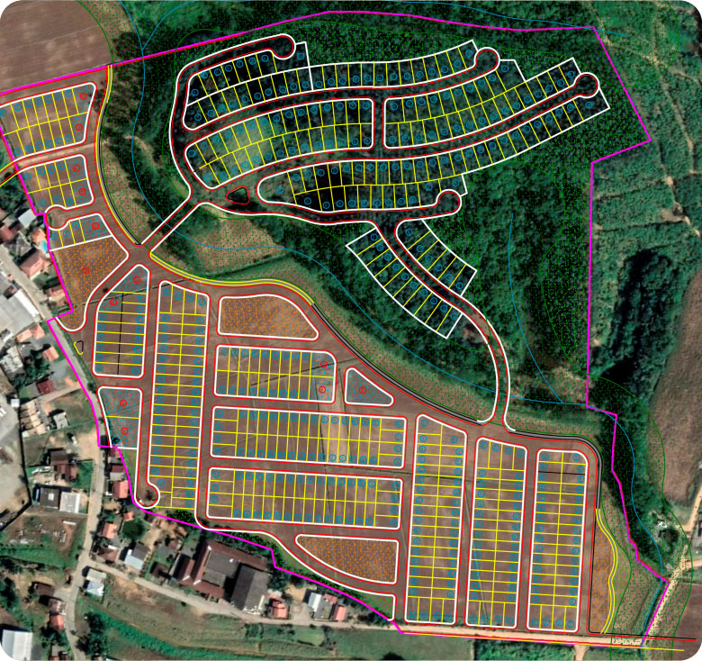 Projetos complementares para condomínios urbanísticos de lotes e/ou loteamentos convencionais, regularização de acesso rodoviários.